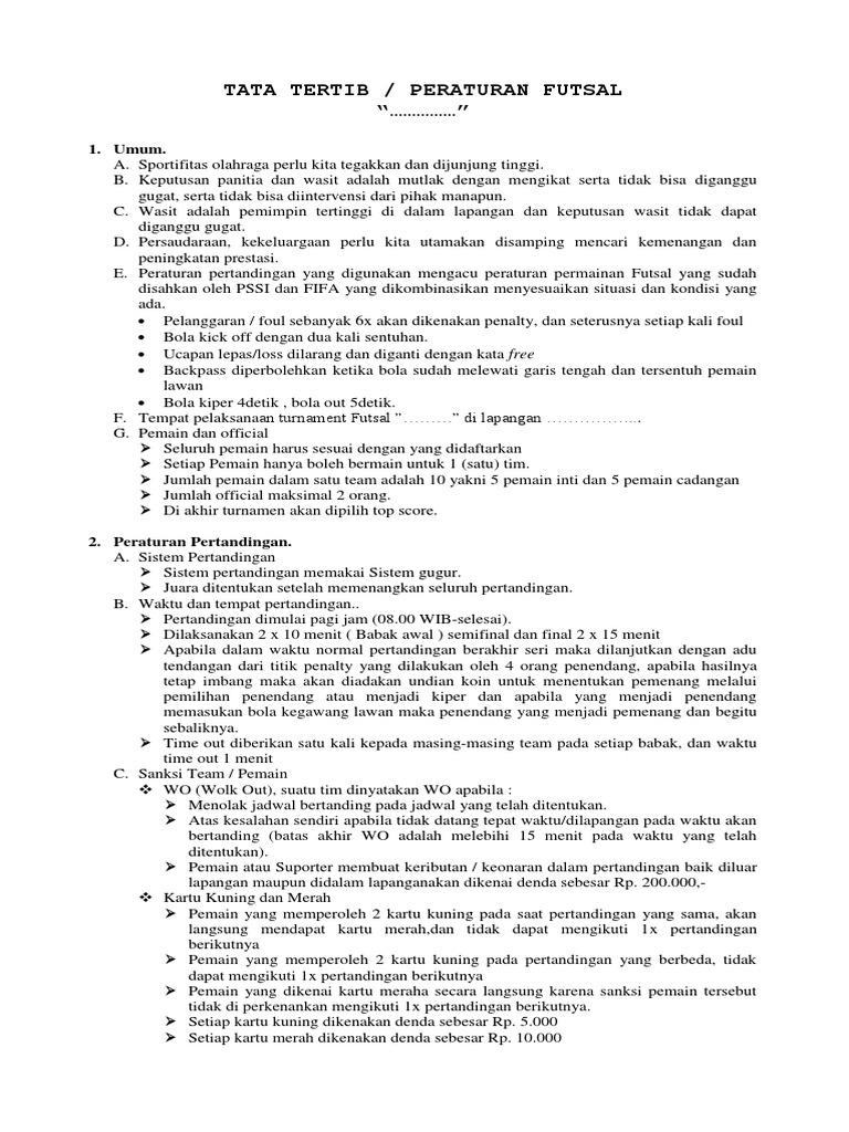 Peraturan Pertandingan Futsal Terbaru Pdf
